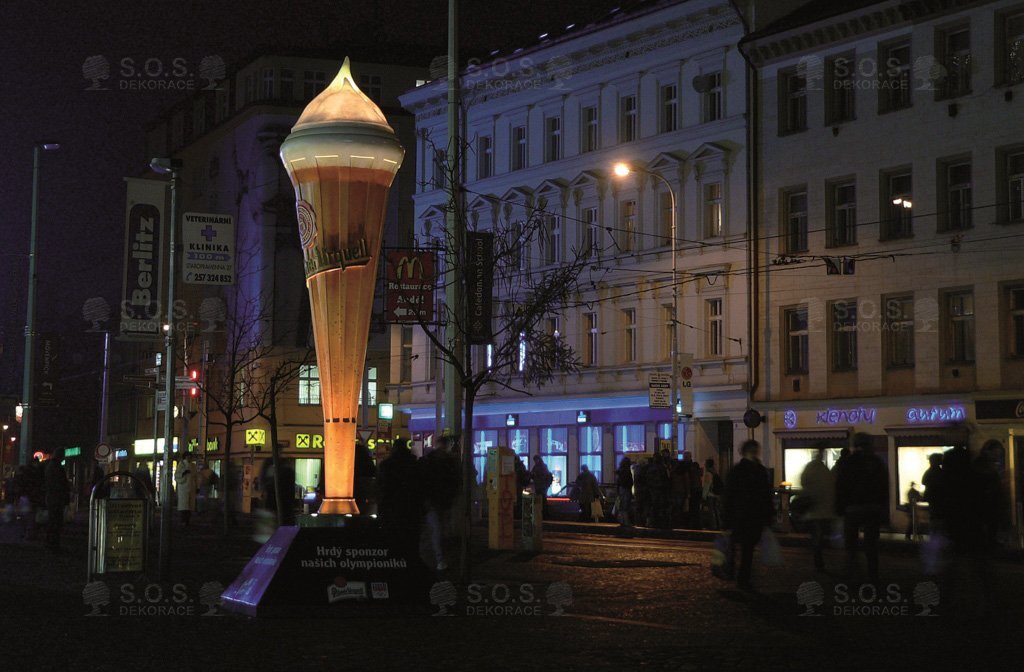 Advertising and decorative objects, oversized models of products, mascots, logos.