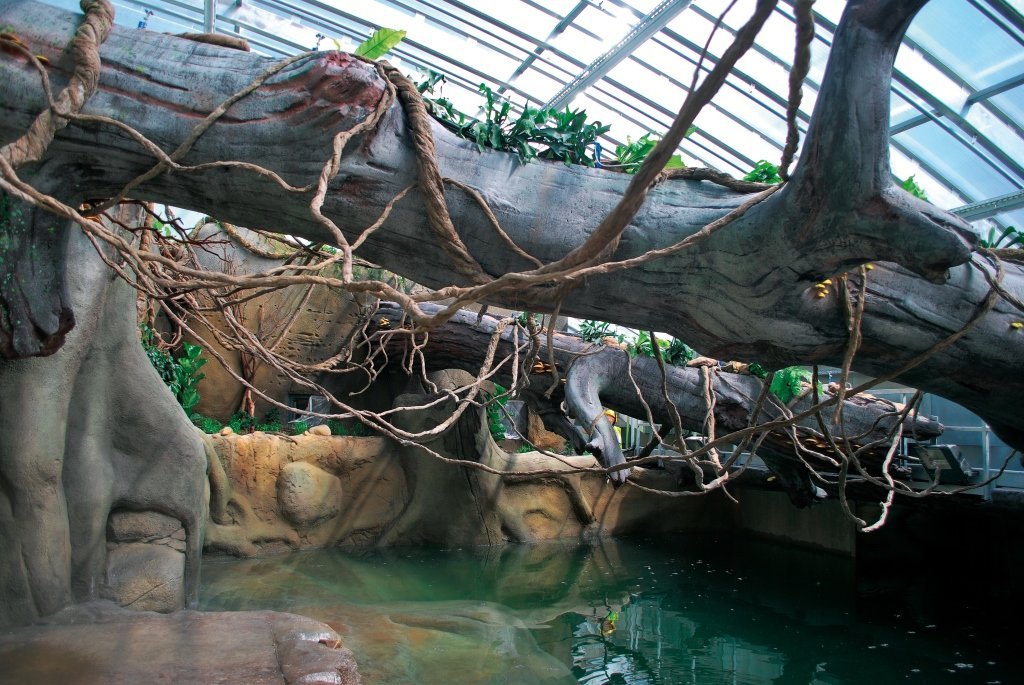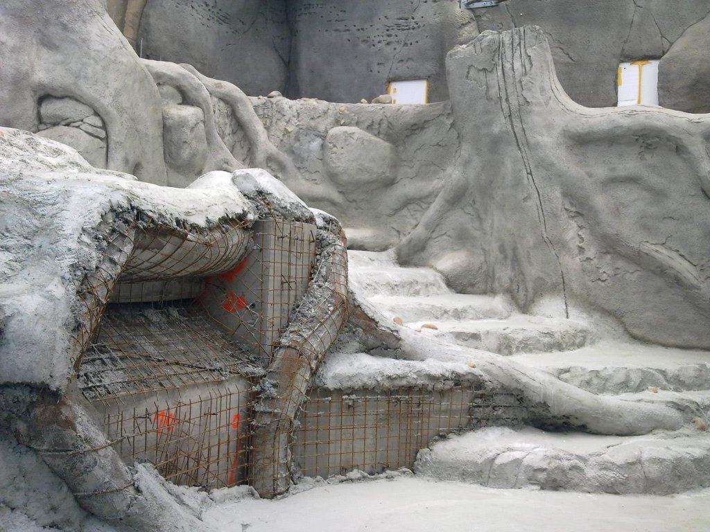 The project for the Prague ZOO involving the construction of new interiors and open-air runs for pachyderms took place in 2012. Our task was to create the overall concept and implement the premises. We combined natural and artificial materials. The dominant feature consists of imitation stone blocks, a tree trunk and vines. A family of hippopotami and elephants found their home here, including the first baby elephant born in the ZOO.